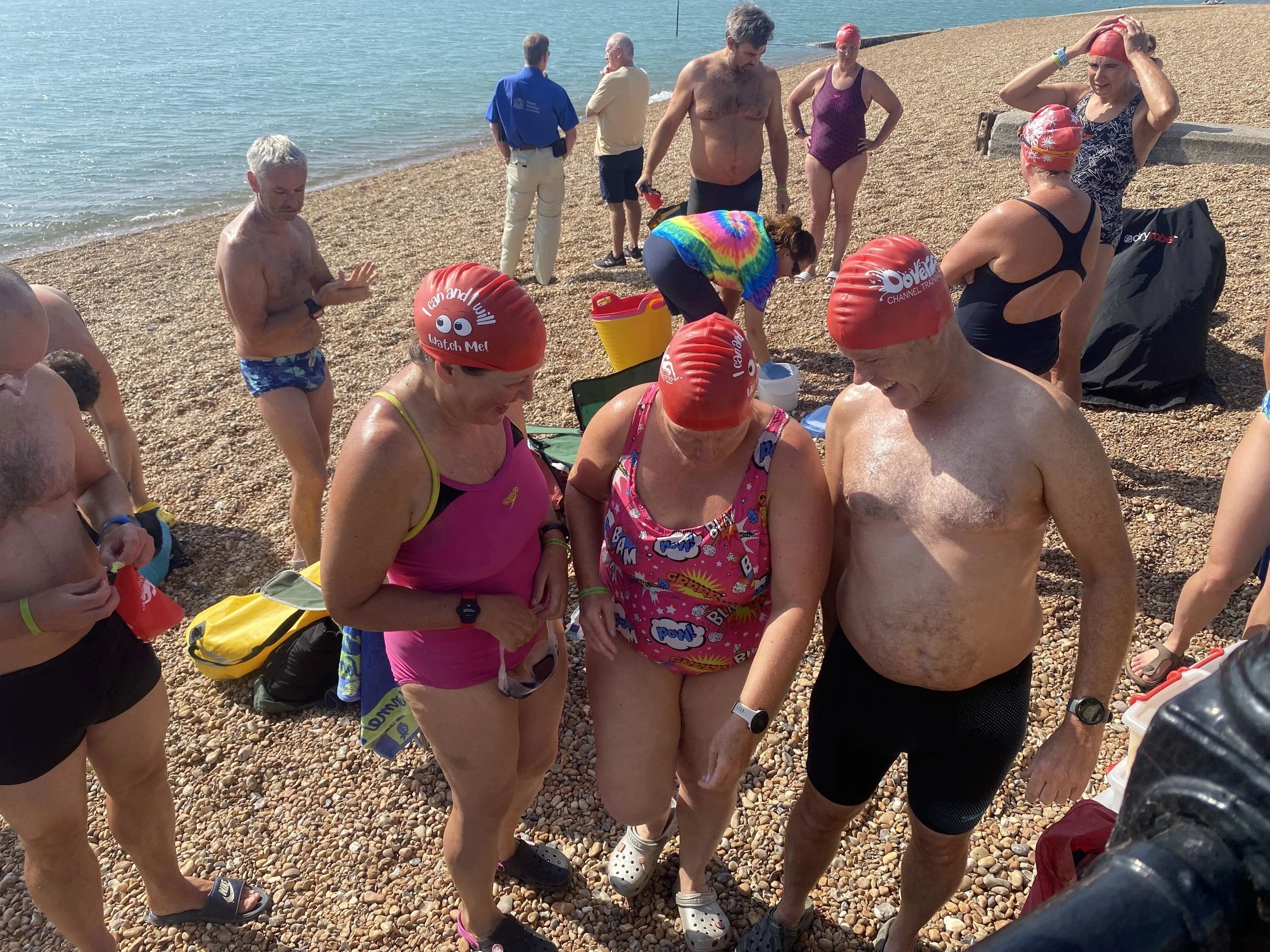 Channel swimmer on the beach